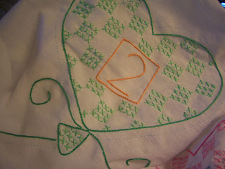 Green flannel for the backing, with multi-colored bit dots. Hoping to use pale green thread for quilting. |